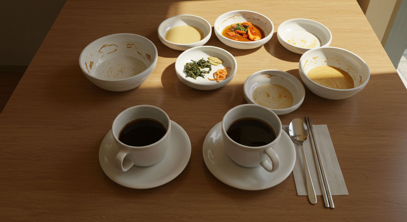 밥, 국, 김치, 커피를 단숨에 넣어버리면