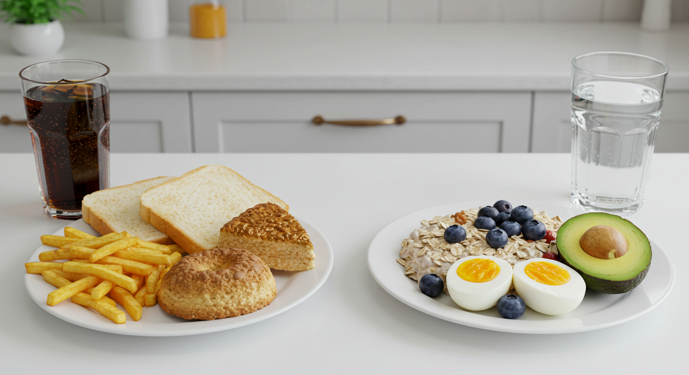 - 메뉴 A: 혈당 급상승 → 포만감 금방 사라짐 → 오전 간식 땡김